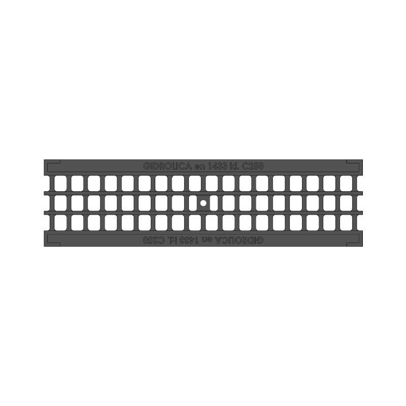Решётка РВ-10.13,6.50 ячеистая чугунная ВЧ, кл. C250 Ячеистая чугунная решетка - не самый популярный, но зато самый практичный вариант настила для лотков (каналов, желобов). Решётка водоприёмная РВ-10.13,6.50 ячеистая чугунная ВЧ, кл. C250 серии Gidrolica Standart с габаритными размерами 500х136х13,5 мм придает лотку дополнительную жесткость и защищает всю систему канализации от засорения, обеспечивает безопасную эксплуатацию и гарантирует ливневке презентабельный законченный внешний вид. Решётка водоприёмная Gidrolica Standart РВ-10.13,6.50 ячеистая чугунная ВЧ, кл. C250 имеет посадочные места под винты для крепления фиксаторами и обладает высокой пропускной способностью воды за счет структуры и расположения ячеек. Рекомендуется для комплектации пластиковых и бетонных лотков собственного сечения.
